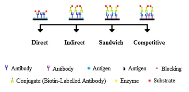 ELISA的發(fā)展起點要追溯到RIA(radioimmunoassay)的歷史,Yalow和Berson在1960s第一次使用碘標記的RIA技術來測定內源血漿中的胰島素水平,然而放射性實驗安全風險太高,不適合進行大面積推廣應用,這時候一些科學家便想用生物酶來代替放射性標記,但如何將酶與抗體或抗原連接而不影響彼此的生物活性成為了必須要捅破的窗戶紙,盡管在當時被普遍認為是不可能的實驗,Perlmann和Schuurs 還是在1966年力證了酶連接的免疫試驗是可行的。