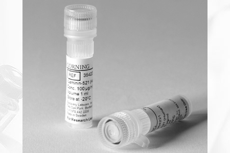 Corning? rLaminin-521, Human, 5mg (50 x 100μg Vials)Corning rLaminin-521 (Human) is a heterotrimer composed of α5, β2, and γ1 chains expressed in a mammalian cell culture system. rLaminin-521 (Human) supports long-term self-renewal of human pluripotent stem cells (hPSC), including embryonic stem cells (hESC) and induced pluripotent stem cells (iPSC) in defined and xeno-free environments. rLaminin-521 provides additional benefits, including ROCK inhibitor independent single cell expansion of PSCs, which improves hPSC culture ease and efficiency.